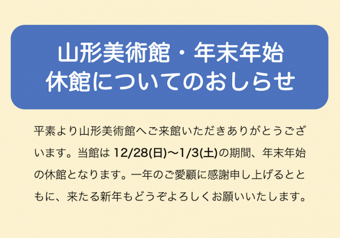 当館は12/28(日)-1/3(土)の期間、年末年始の休館となります。